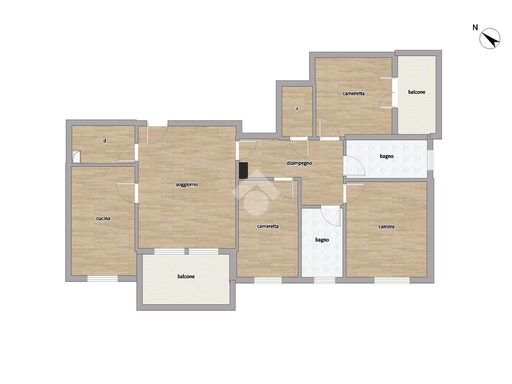 Al piano secondo proponiamo appartamento di quattro locali composto da soggiorno con affaccio sul balcone, cucina abitabile, camera matrimoniale, due camerette di cui una con balcone, doppi servizi e due ripostigli.
